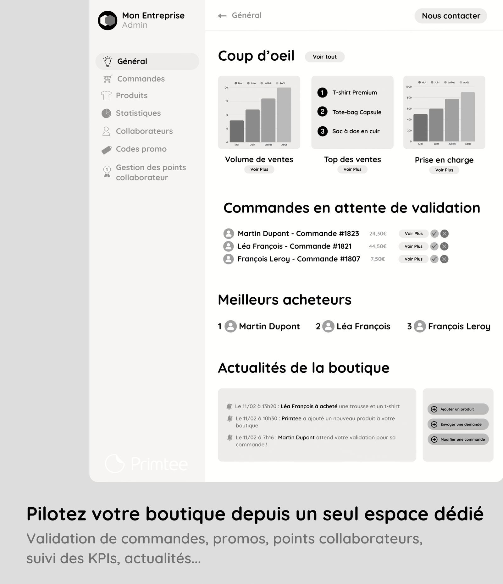 Primtee personnalise vos textiles et objets de communication dans notre atelier français avec passionet engagement. Du marquage à la gestion de vos boutiques en ligne,nous vous accompagnons de A à Z dans une démarche responsable.