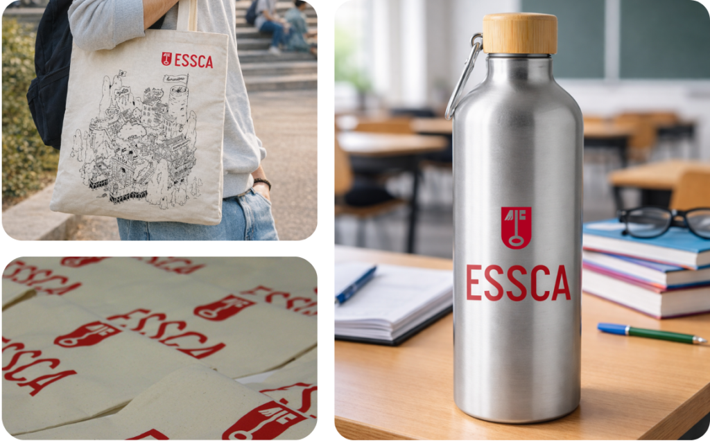 Fabrication de totes bags et gourdes pour les salons et rentrées scolaires des étudiants. Création d'une gamme de vêtements de travail pour les équipes techniques.