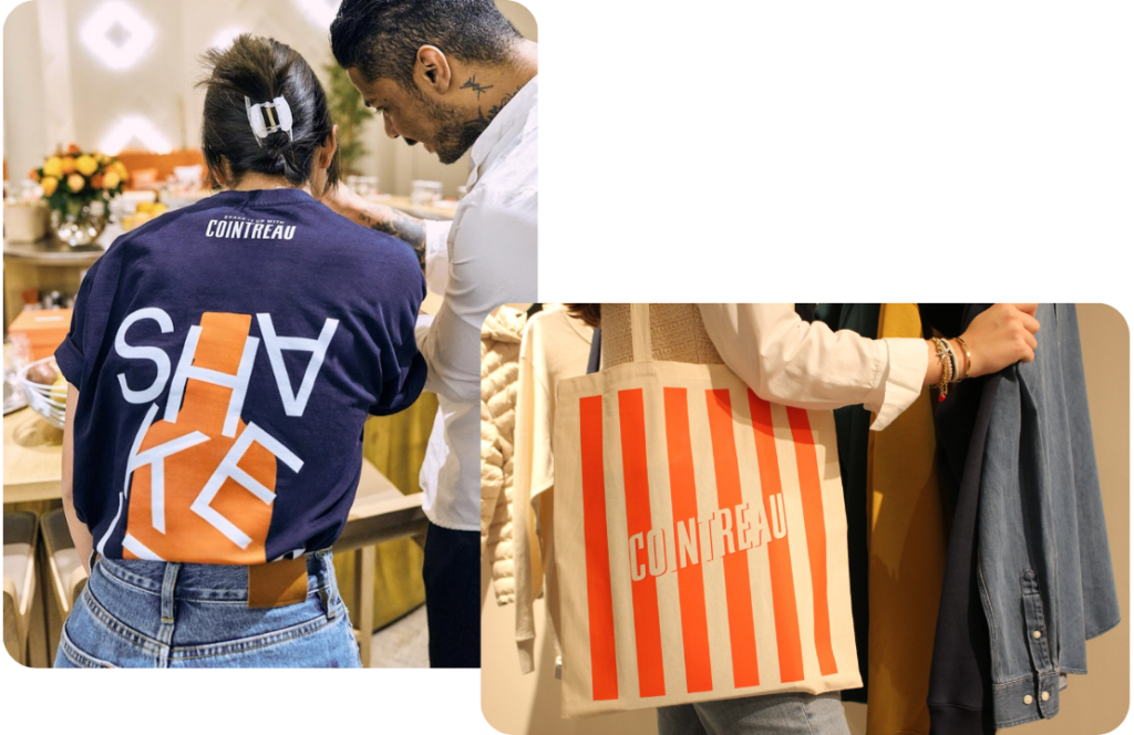 Fabrication de t-shirts et totes-bags pour des évenements de la marque.